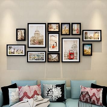 Deco murale de salon en couleurs neutres. Decoration cadre photo plan salon salle a manger cuisine.